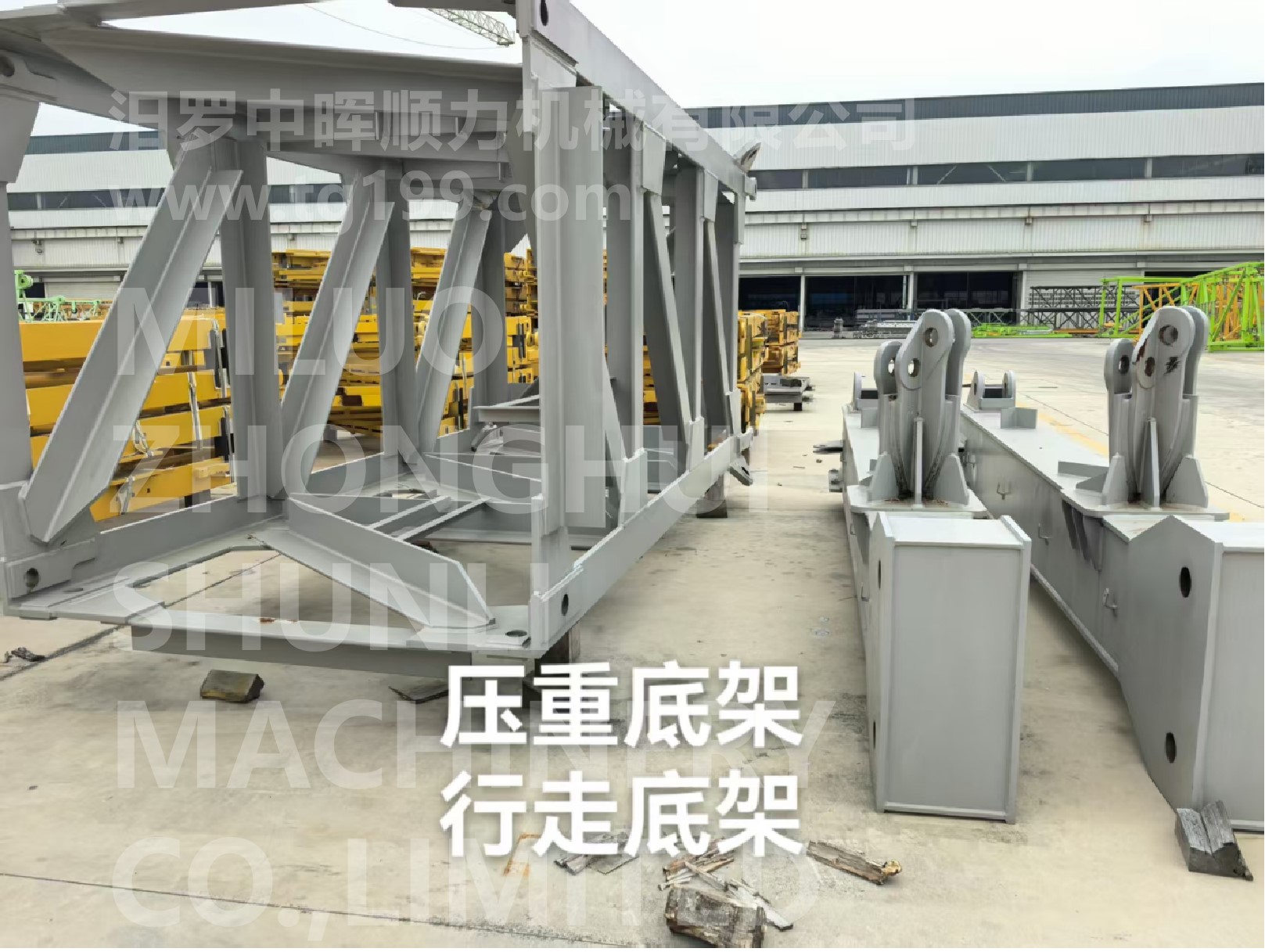 压重底架/行走底架 (单个尺寸 4*0.5*0.6 m 总重量约 2300 KG) Total Weight: Approx. 2300KG Single Size: 4000MM*500MM*600MM Purpose: Fixed tower crane base
